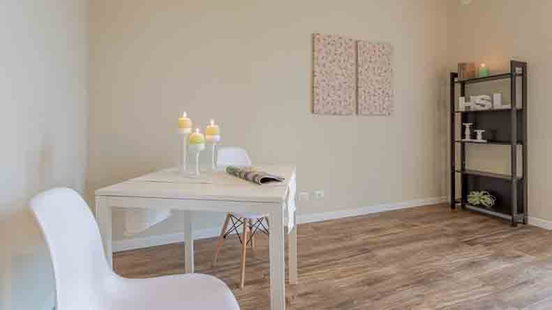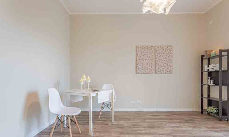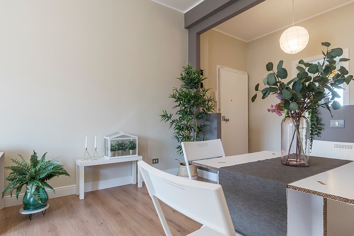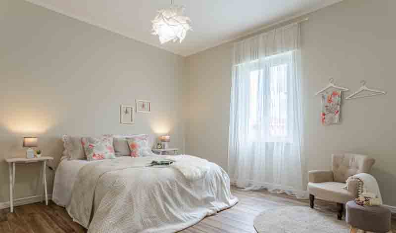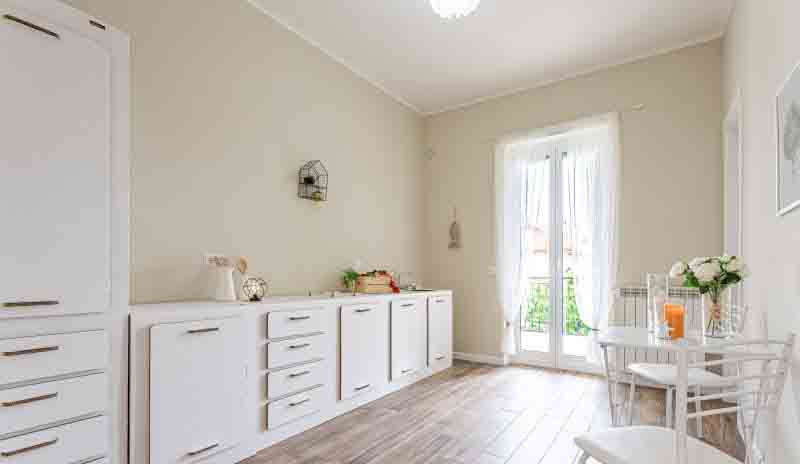 Entrando nell’immobile troviamo un ingresso che ci conduce nel salone della casa dal quale si accede al primo balcone, adiacente abbiamo la cucina abitabile con uscita sul secondo balcone della casa, proseguendo nella zona notte troviamo una camera matrimoniale con accesso al primo balcone, seconda camera da letto con uscita sul secondo balcone della casa, servizio finestrato ed infine ripostiglio.